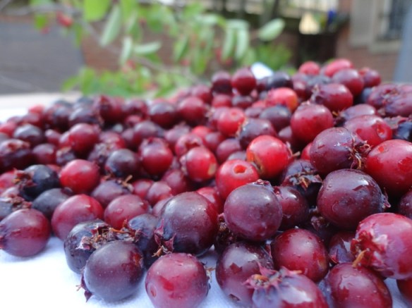 Also called Juneberries or serviceberries–or any other name that Faith Durand has identified in her post about them–these are sweet, little bundles of berry love. Lots of public places, front yards and tree lawns seem to have these trees and I rarely see the berries harvested. So, if you’re on a walk and see a tree that looks like the picture below, go get a bowl, knock on the door of the yard they’re in, make a friend and get harvesting.