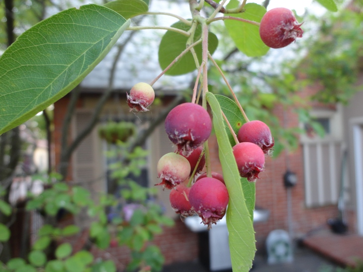 When we first bought our house, we had no idea what a gem we had in the courtyard patio. It wasn’t until a dear friend was over for dinner that we learned what a Saskatoon was.