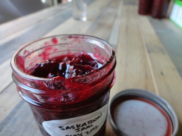 Though they look and even smell a good bit like blueberries, they’re more botanically related to apples and with that comes a lot of pectin. This means you don’t need to add much–if any at all–when making jam out of them. Just mash, add acid, cook very briefly, add sugar, boil a bit and jar ’em up.