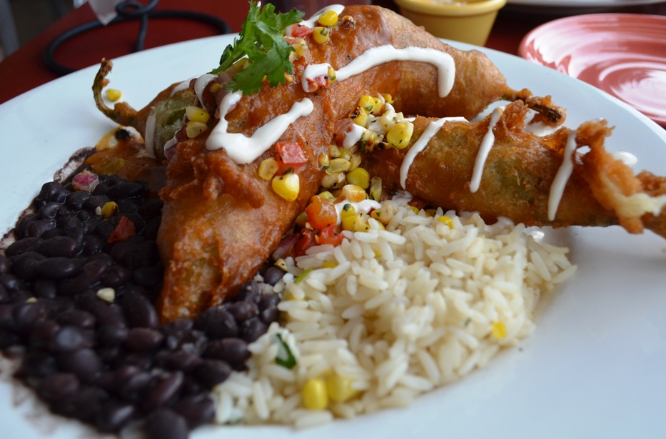 While on our recent 9-day excursion in the West, I discovered I have a deep love for chile rellenos.  It really shouldn’t have come as a surprise to me. I mean, I love cheese, I love spicy things and everyone loves something fried now and then.  It never once occurred to me to order one of these before because there’s always seemed to be a better option.  Wanting a vacation out of the bigger cities, we stopped in Golden, CO for dinner the night we were close to Denver.  We settled on a really great-looking patio at the Table Mountain Grill & Cantina.  A happy hour menu and several fellow diner recommendations lead to me choosing this thing of beauty below.  Gorgeous, sure.  One bite and I was hooked.
