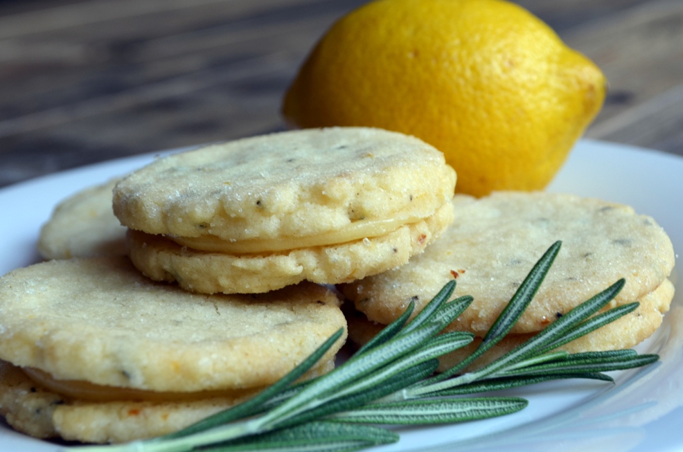 Lemon-Rosemary Sandwich Cookies with Mascarpone-Lemon Curd Creme